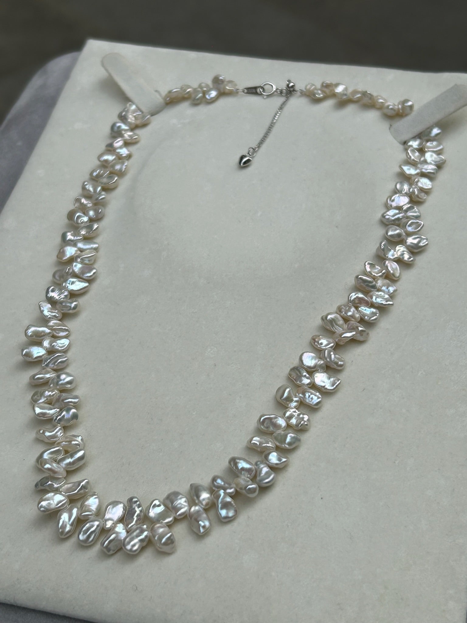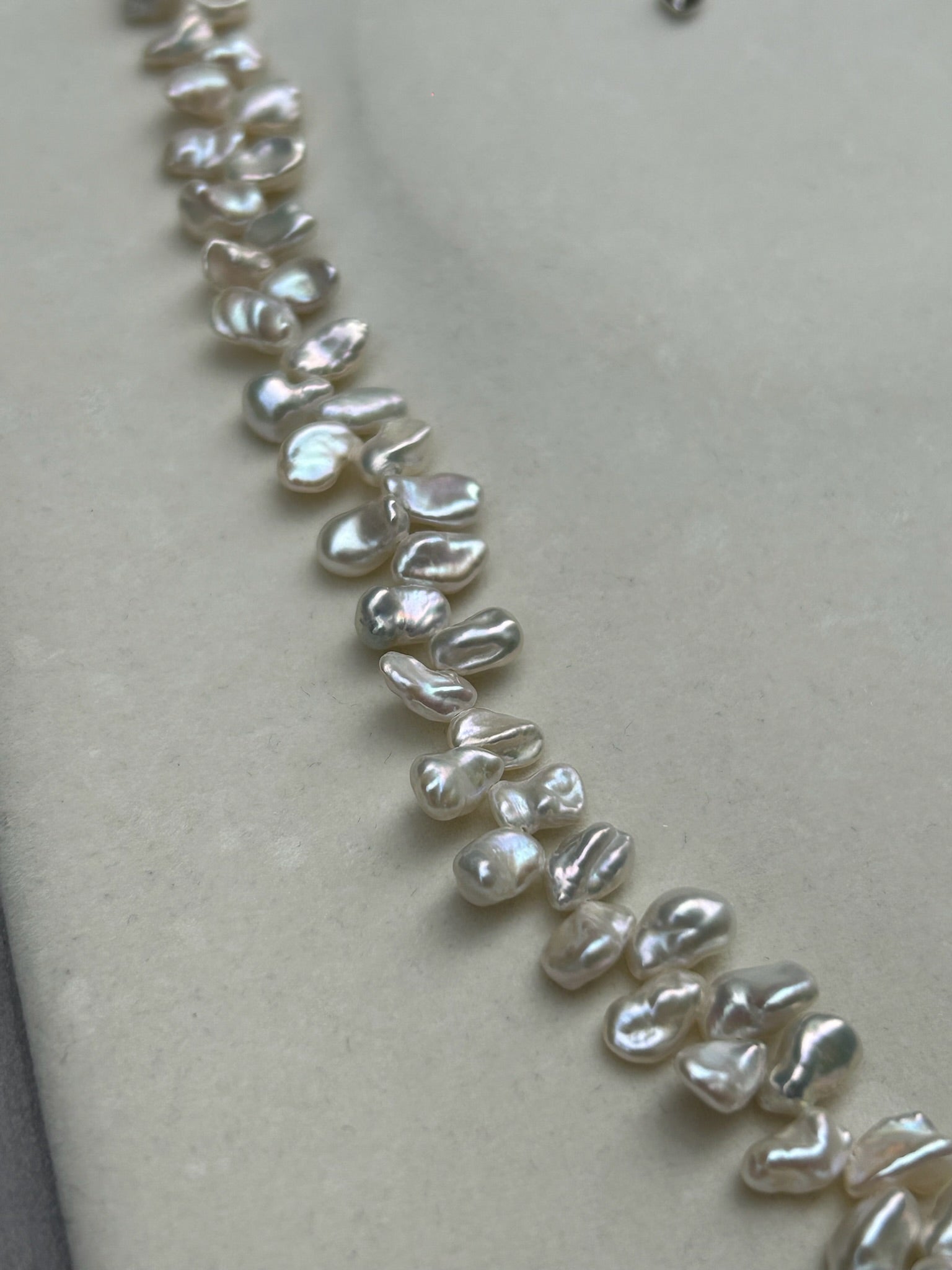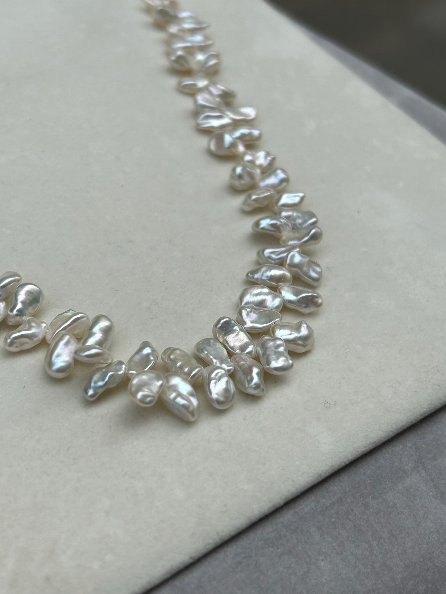 Petralis is a handcrafted necklace that captures the delicate elegance of nature in its purest form. Made from luminous Keshi pearls, each uniquely shaped like a petal, this design reflects the organic beauty and iridescent glow that only natural pearls can offer. Finished with a refined 925 sterling silver clasp, the necklace combines timeless grace with artisanal craftsmanship.