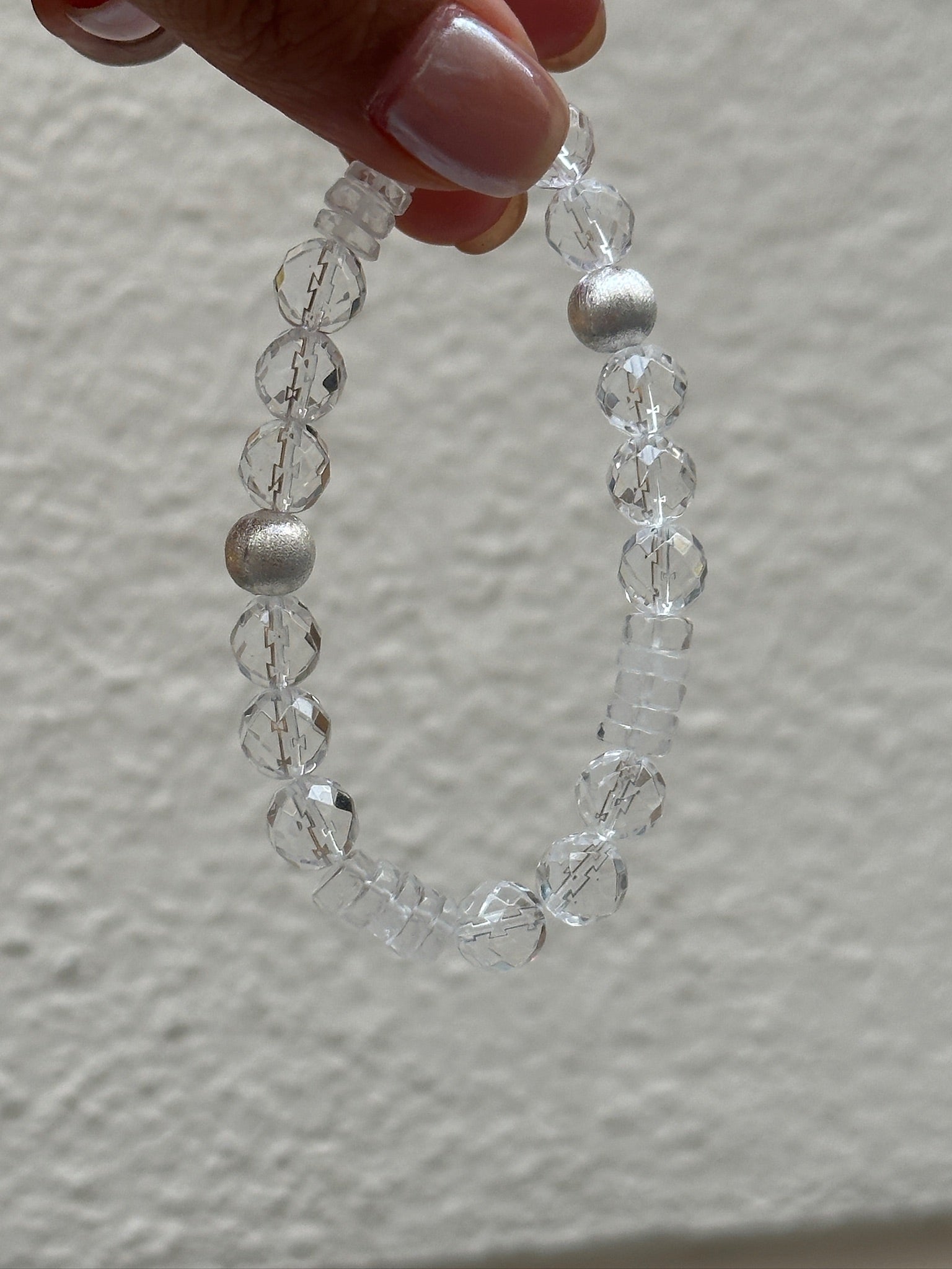 Each crystal bead refracts light with diamond-like brilliance, while the silver adds a touch of sophistication. Veyra is more than a bracelet — it is a symbol of purity, balance, and inner strength, crafted for those who appreciate understated luxury.